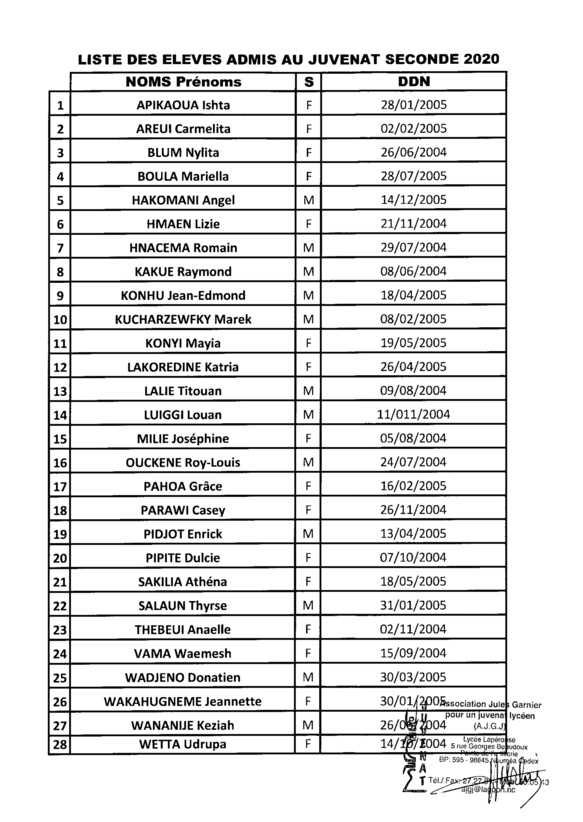 Ci-joint les listes des élèves de Terminale et Première qui ont été sélectionnées par le jury pour intégrer le Juvneat en 2026. Pour les secondes, la liste sera affichée quand on aura les résultats...